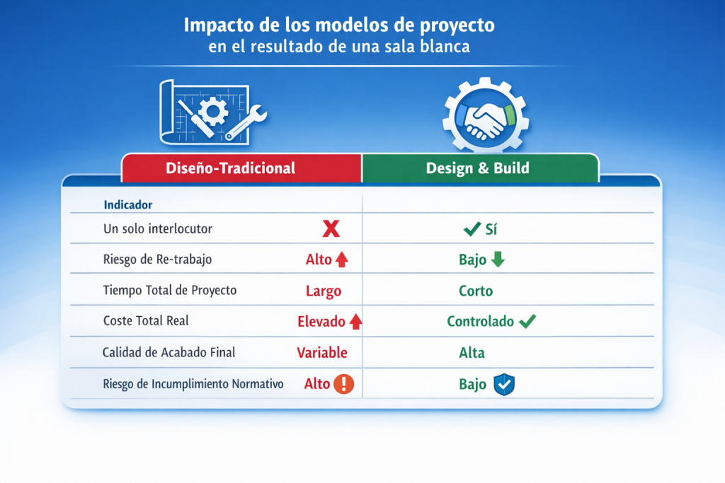 Más allá de diseño o construcción por separado, el concepto de Design & Build (Diseño y Construcción integrados) se está imponiendo como la metodología más eficiente para proyectos de salas blancas.